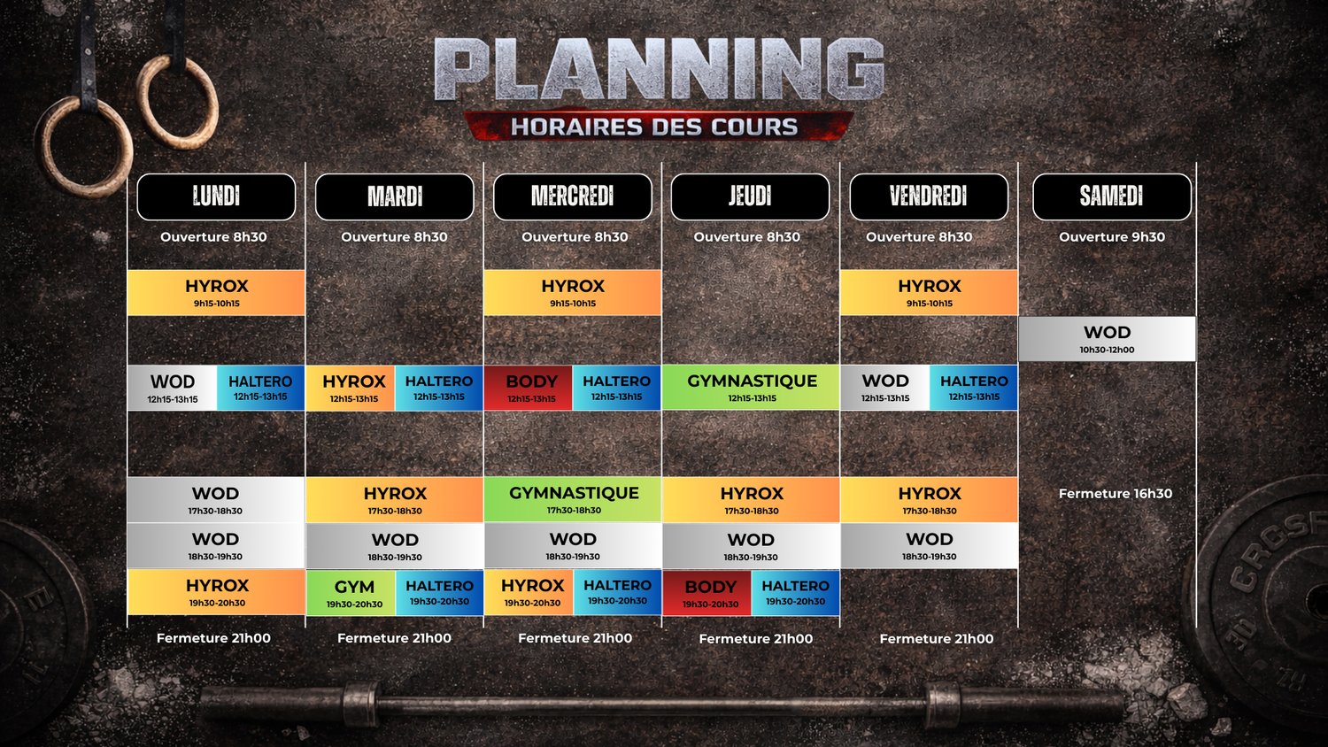 WOD = Functional training mêlant travail avec charge, poids de corps et cardio.